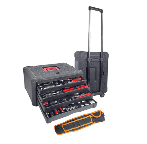 रोलिंग टूलबॉक्स के साथ 188-टुकड़ा सेट ड्रॉअर के साथ चार-परत उपकरण किट